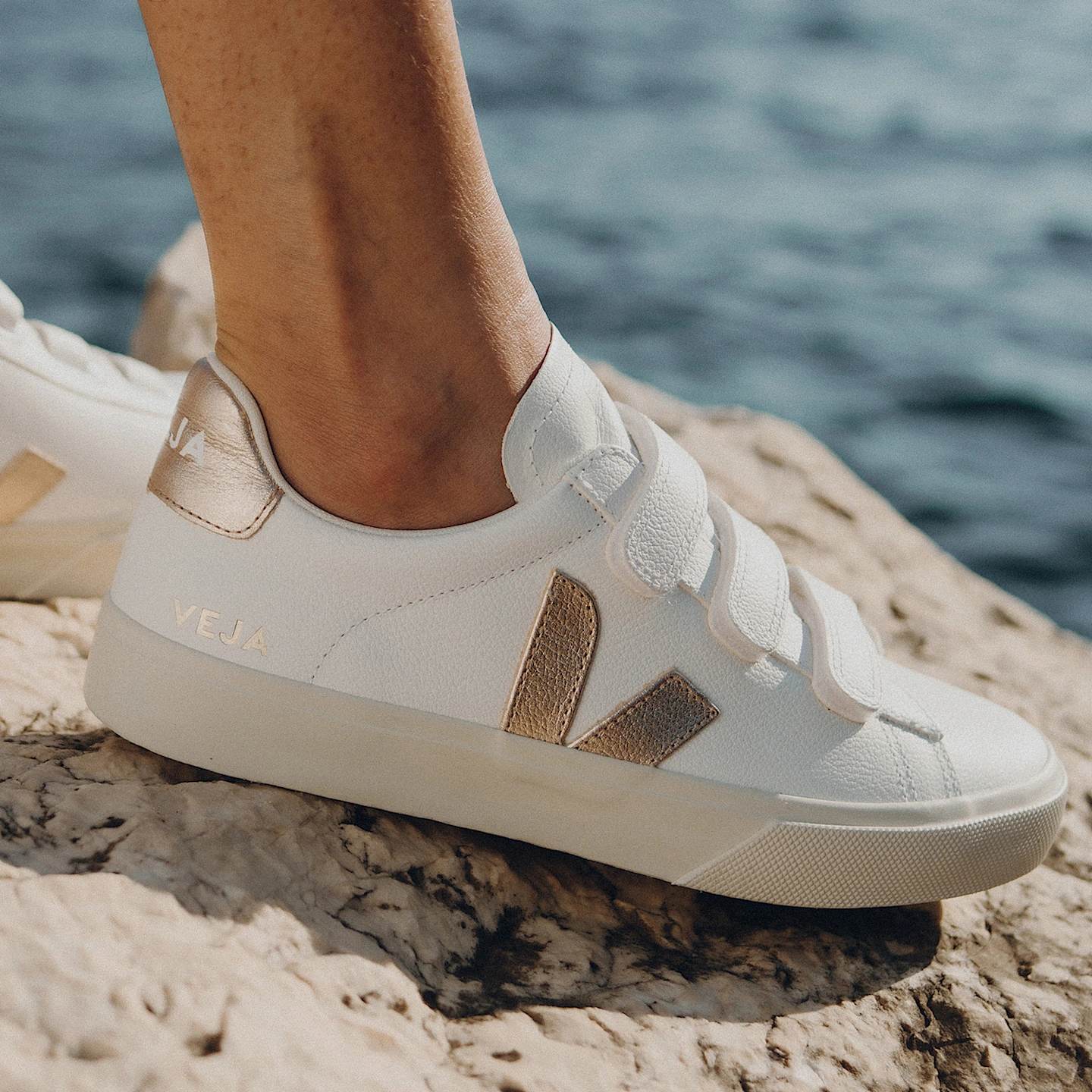 נעלי סניקרס Veja לנשים דגם RECIFE LOGO LEATHER EXTRA WHITE PLATINE RC050276A* מבצע חיסול מידות אחרונות *